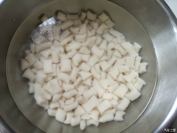 提前准备一盆冷水,将煮好的面丁捞出,迅速放入冷水里降温。 过2遍冷水,确保面丁完全凉透,这样炒制时不会发粘,保持口感劲道。