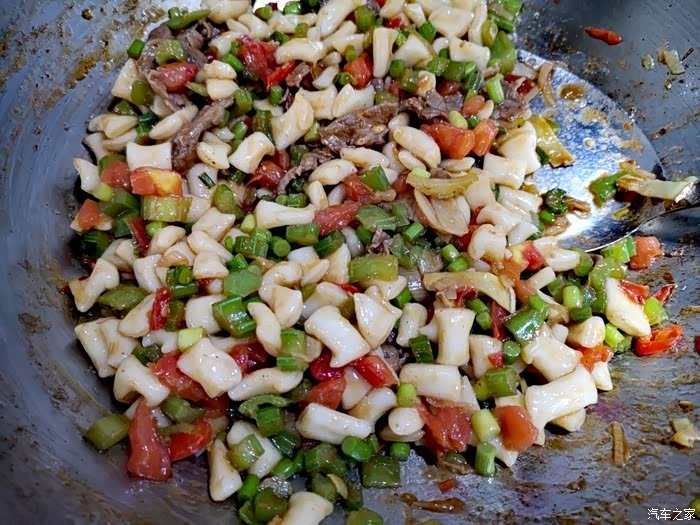 一份色香味俱全的丁丁炒面完工。 既不油腻也不粘糊,保持面丁颗粒分明,又有菜香味包裹。