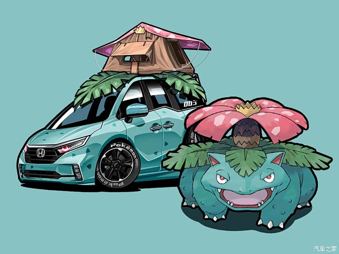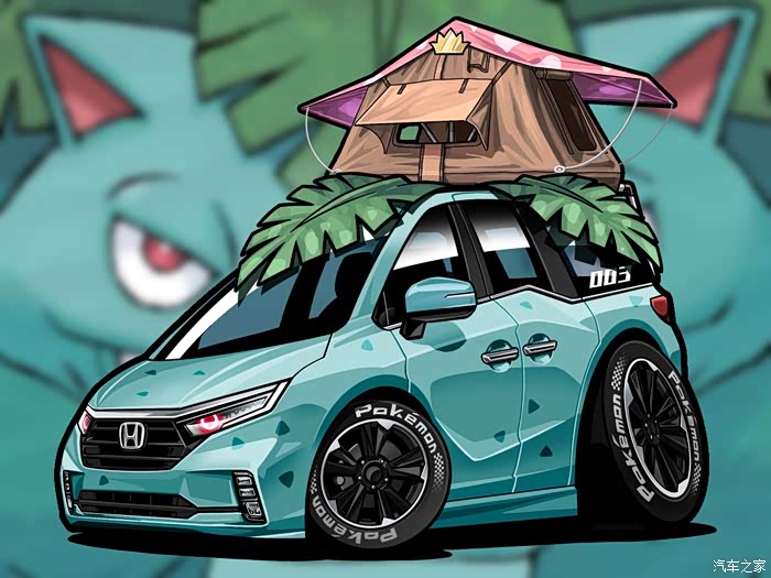 这是这个系列的最后一辆车了,以妙蛙花为主题绘制的本田奥德赛。