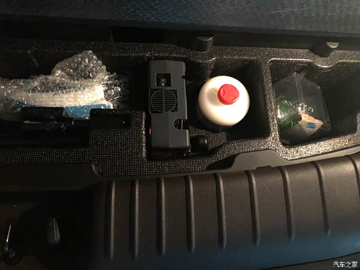 3. PHEV没有备胎但是有补胎液和气压泵 以及 随手充电枪(领克01 PHEV后来提供了备胎和充气补胎套装的自由选择,希望未来嘉际也可以提供类似的。)