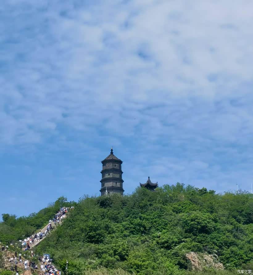 清晨6点从扬州出发,妈妈上车就拍美美的照片,哥哥上车后就补觉了,弟弟给他打开了魏牌蓝山标配的二排娱乐屏,就安安静静的看熊大熊二的电影了。自驾约40分钟便到达圌山风景区。