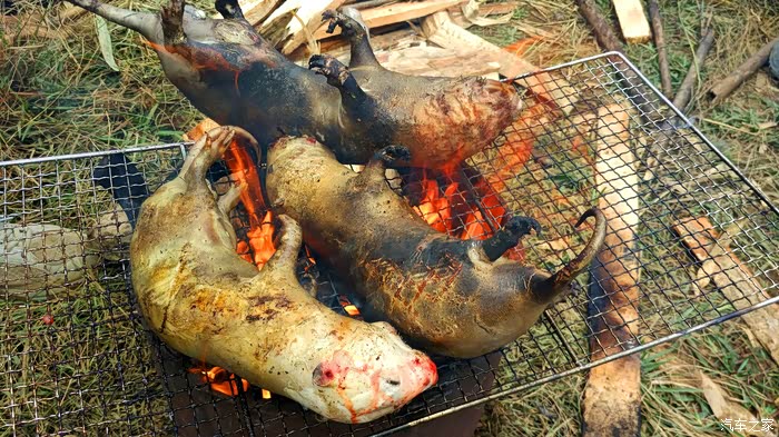 烧开水准备给竹鼠去毛,还有只鸭子留着晚饭。