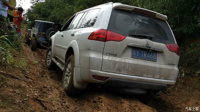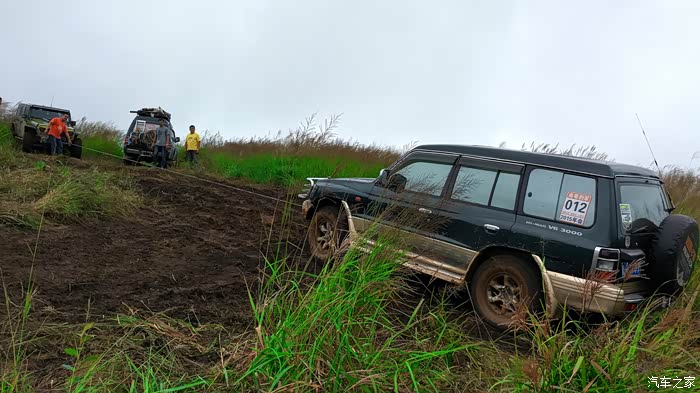 这辆都市型三菱SUV虽然是四驱,但是由于底盘太低、轮胎牙也不是为越野设计的,所以这次队伍中它是跑的最为难受的,一路上都得拖着走