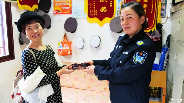 在这里拍照的时候,我们车友圈的一位朋友把老公在法国巴黎买给她的生日礼物,一款价值人民币8000多块钱精致考究的奢侈品牌眼镜遗失在这里了。直到我们在游船上了才发现。我们尝试着通过船长和码头保安系统人员联系,原以为无望找回的。没有想到保安的监控室工作人员与我们加了微信,发我们人员着装特征,按时间段查找视频,发现拾到眼镜的游客,帮我们追回了眼镜。我们下船后在保安部取回了眼镜,后面专门展现了一下这样的镜头。
