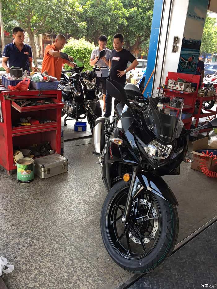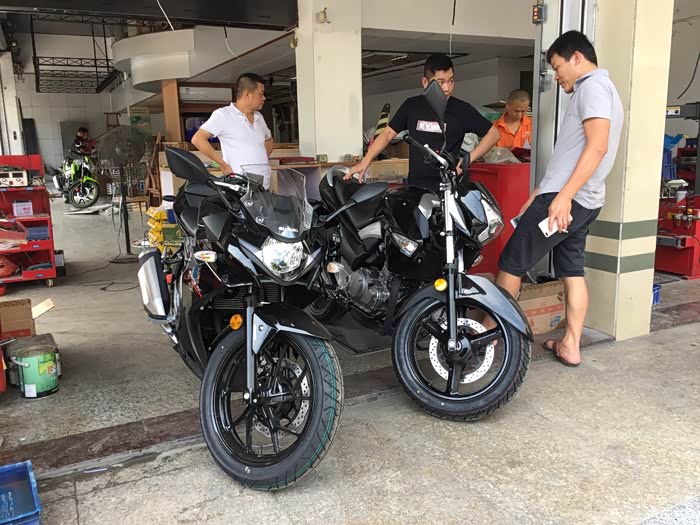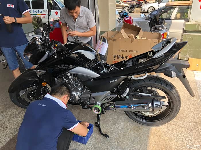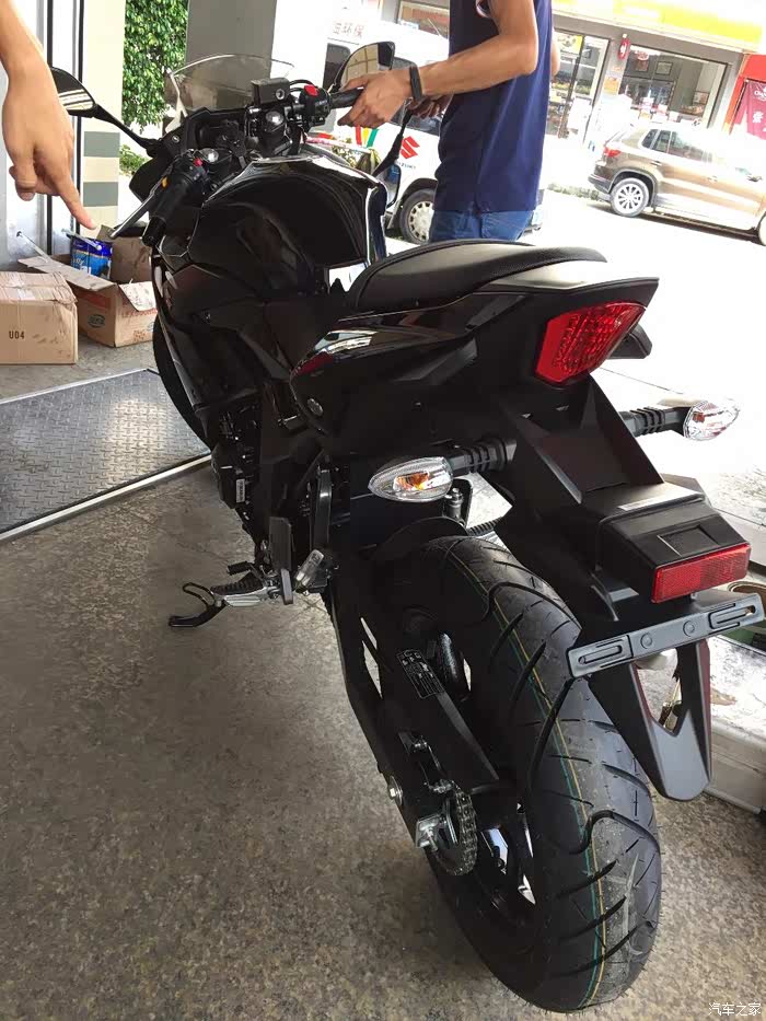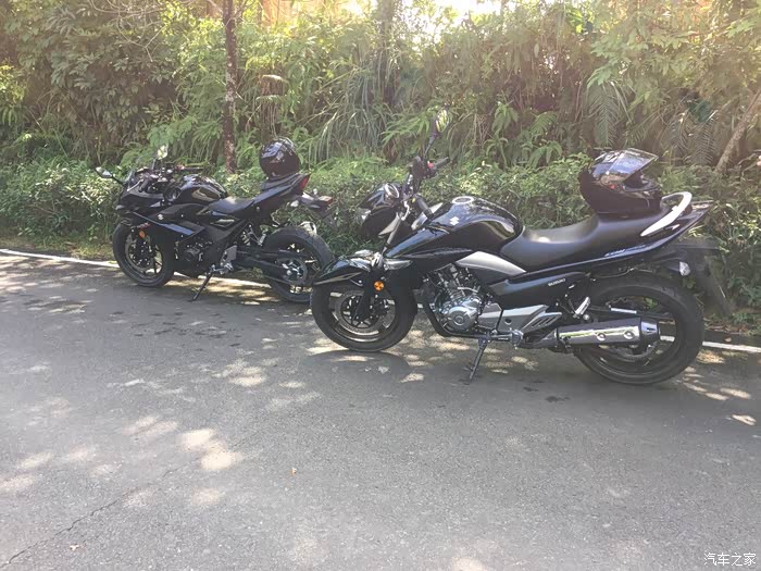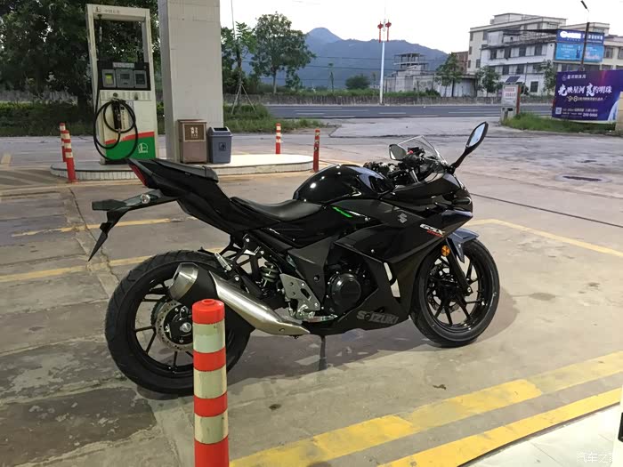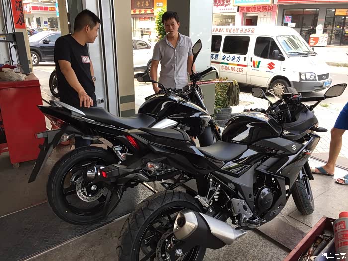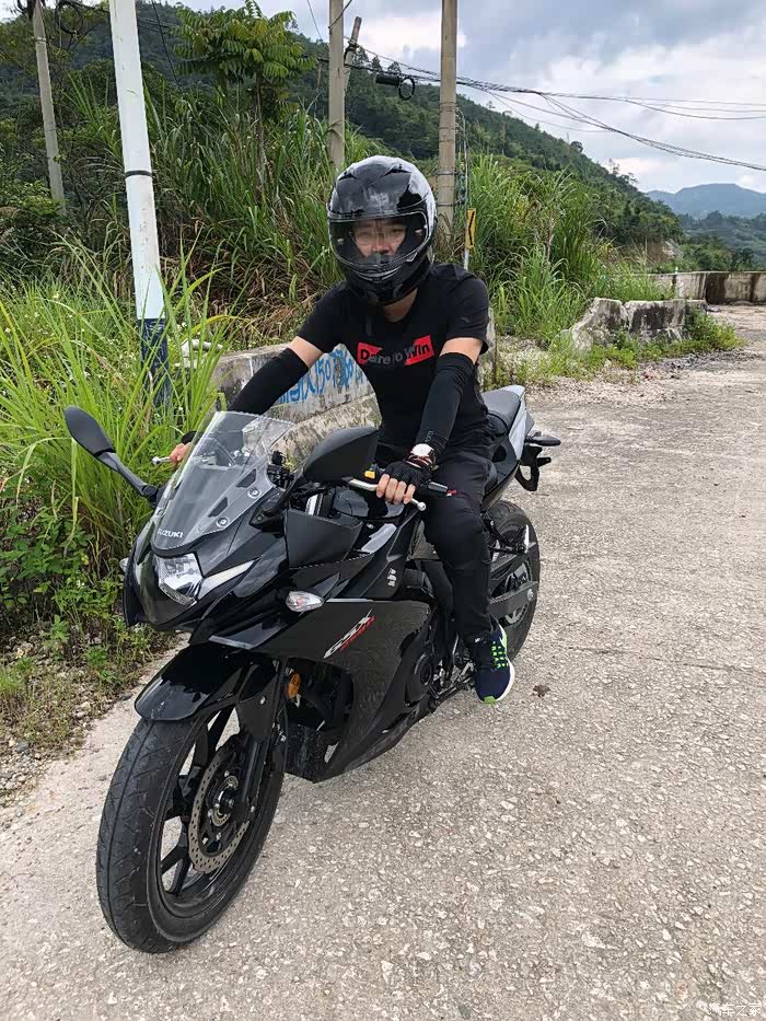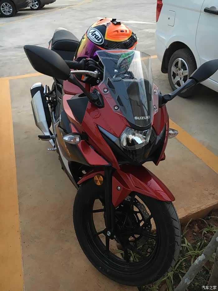 和好友两个月的选车,从开始考虑的本田CB190R到春风250NK,再到GW250,一路往上,一直对跑车不感兴趣,到最终却提了个仿赛GSX250R 不为别的,为外观设计漂亮买单,本人开店,每天要把摩托车推进推出,刚开始考虑轻便一点的190,但看了实车还是没有喜欢的冲动,春风250看实车感觉有点异类,而且用料做工也是一般,然后去看了GW250,说真这个GW250看图片还真不咋地,有点老土,但是实车却不错,有点大气的感觉,坐上去试推动车子,我的妈呀,真重!瞬间无爱,而且都二三万的车了,没有ABS,PASS 最后看到店里的GSX250R黑红,虽然还装在车架里面被泡沫包着,但看用料什么的很好,分体式坐垫是我的菜,时尚嘛,不考虑载人,所以后座不舒服也就无所谓了,喜欢载人的就不要考虑这车,坐的和开的都难受,当准备下订单的时候看到网上公告国四版本GSX250R-A 犹豫了几天果断下单,国三就国三吧,就是以后二手不能卖异地,等车太煎熬了,搞的都失眠了,约好朋友趁官网有优惠果断下单,朋友考虑要带人就定了GW250,两车行驶方面看后面图片介绍