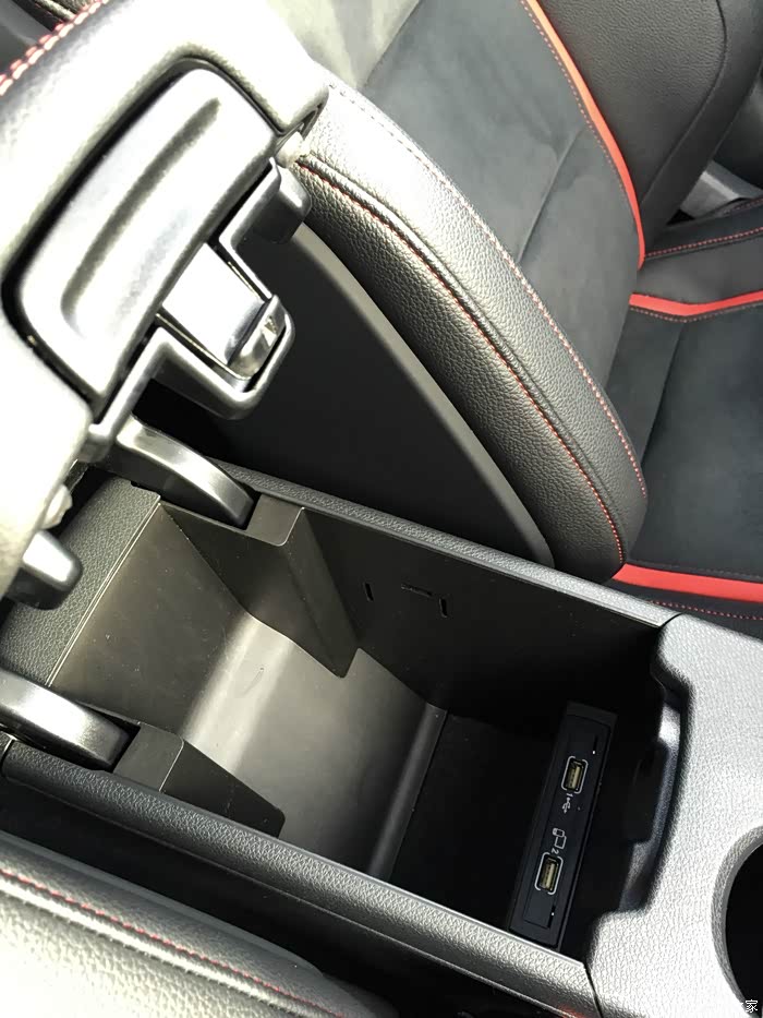 副驾驶门把区域 特制翻毛皮和红线很有感觉