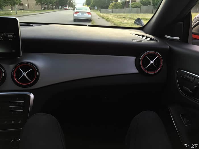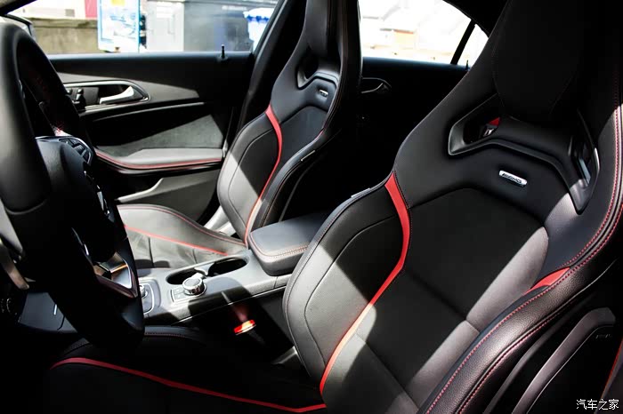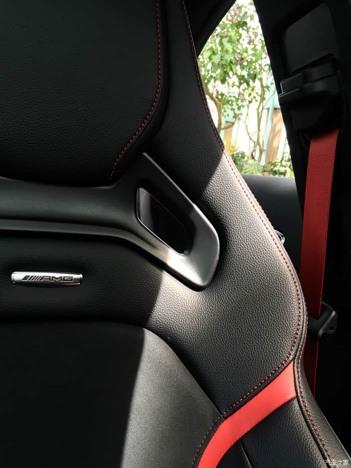 值得一提的是加拿大版CLA45的运动座椅中间部分是比较特别的翻毛皮材质 摸起来挺舒服的