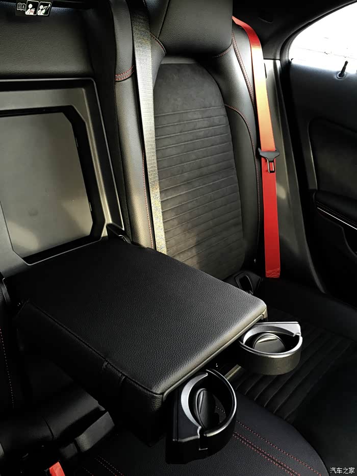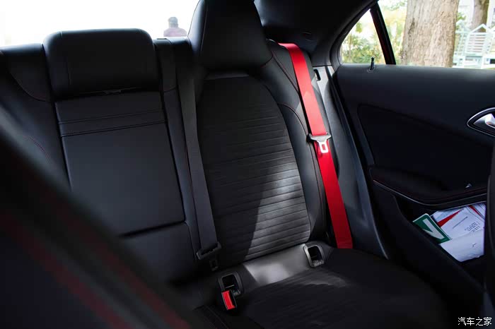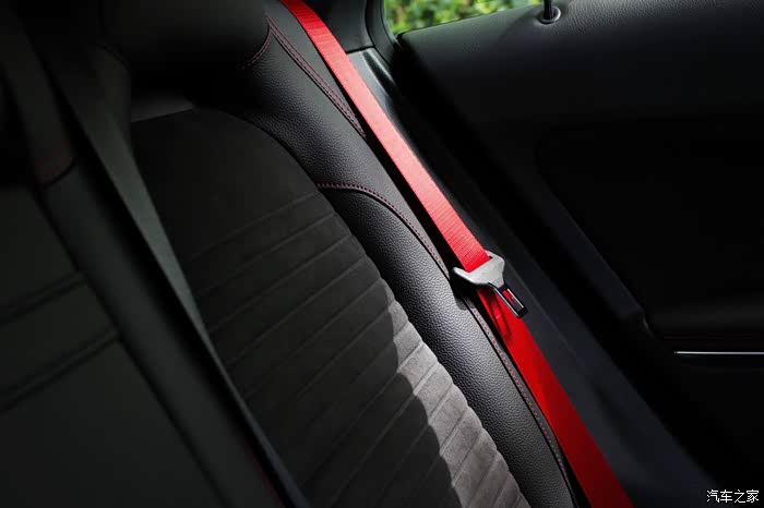 后排同样配有红色安全带