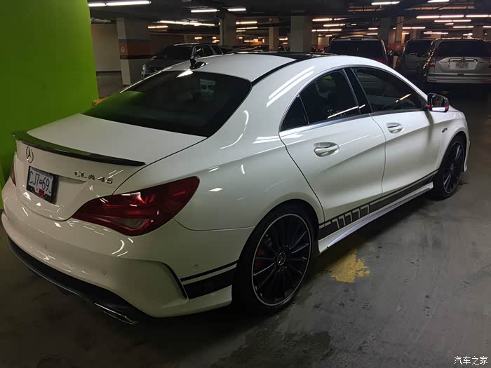 。之后就经常在汽车之家上看别人的提车作业。正好16年款的CLA45在动力和外观方面都有点小提升,所以在选车方面就没什么太大的纠结了。不过话说回来当初有点想上宝马M4,但是考虑了下M4是后驱下雪天不方便而且又是双门的万一爸妈弟弟妹妹来了要载他们多尴尬