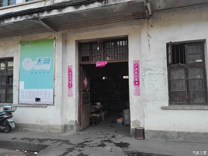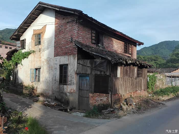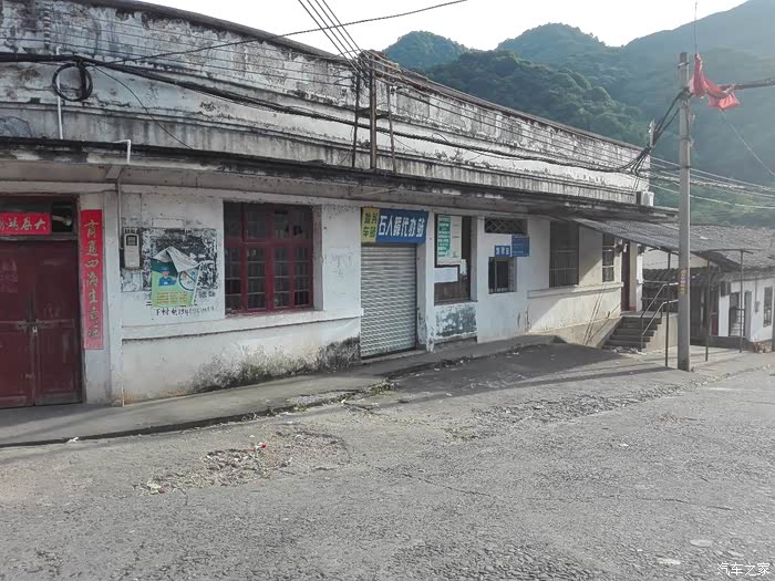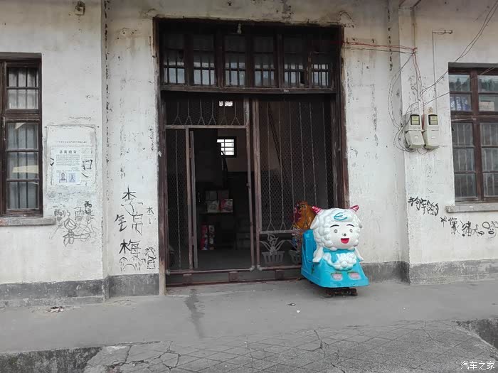 这个也是一个商店,旁边刷的黑漆小黑板还在,只是这个楼大门紧闭,窗户破破烂烂的,人去楼空。