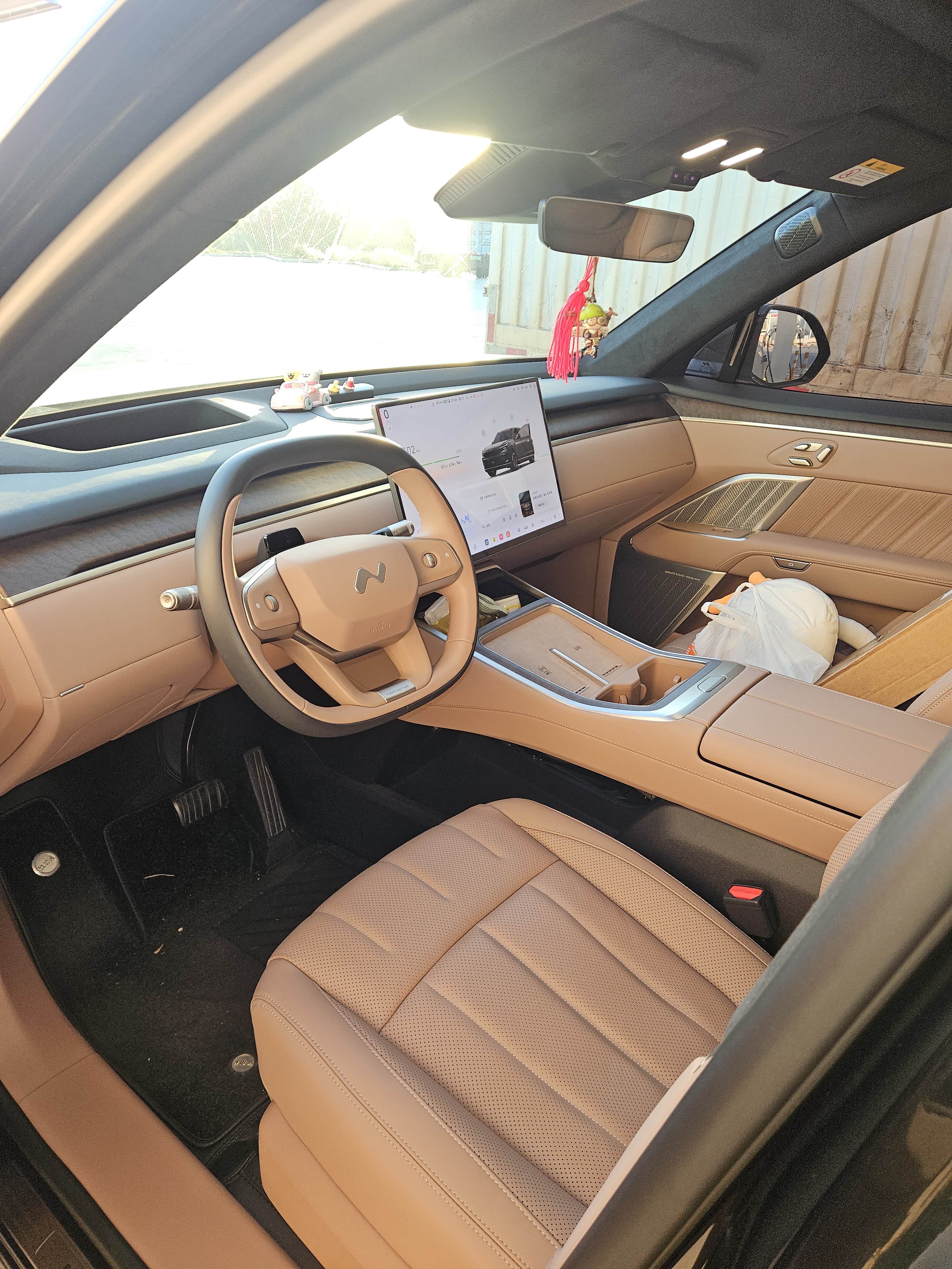 提车过程 7 月 31 日发布会当晚第一时间就去锁单,满心期待着早日提车。终于,在 9 月16 日,爱车终于到达海口蔚来龙华交付中心。交付的流程非常顺畅,总共耗时大约 1 小时。首先是文件签署环节,工作人员递给我环保清单和保修手册等重要文件,详细地为我讲解了每一份文件的内容和用途,确保我对车辆的相关信息有全面的了解。在签署文件的过程中,工作人员还不时地解答我的疑问,态度十分专业和耐心。接下来就是车辆功能讲解。交付专员拿着 NFC 卡片,一步一步地教我如何使用,还特别提醒我要妥善保管,这可是车辆的 钥匙。对于车上的各种功能,交付专员也进行了详细的演示和说明。然后我自己绕着车仔细查看了外观,没有发现划痕、瑕疵或者色差,接下来一块合影之后我就开车回家了!