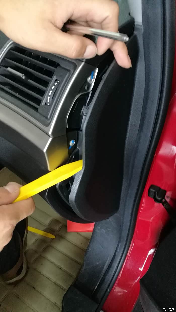兄弟们,我又来了,车买回来快两年了,喜欢改的都改的差不多了,唯一不满意的就是导航,这个也是大家都认可的地方,前段时间网上有人发出一款大屏导航,但是是65的小弟(S50)专用的,问了店家,通用的,抱着车做小白鼠,大屏也再一次做小白鼠的心态拍下,昨天去安装,安装过程还是比较快的,专用接口,下面,我详细说明一下拆装的过程第一步,拆手套箱旁边的面板,那个翘板往外一撬即可往外拉,不必担心拉坏,如果不敢下手,也可把密封条拉出来再拆面板,不用担心,密封条很好装的。扭下这个螺丝银色装饰条往外拉,都是卡扣的,不用担心 我的车是中配的,所以有一键启动,如图,翘板往这个位置撬一下如图,这个位置插进去再撬一...