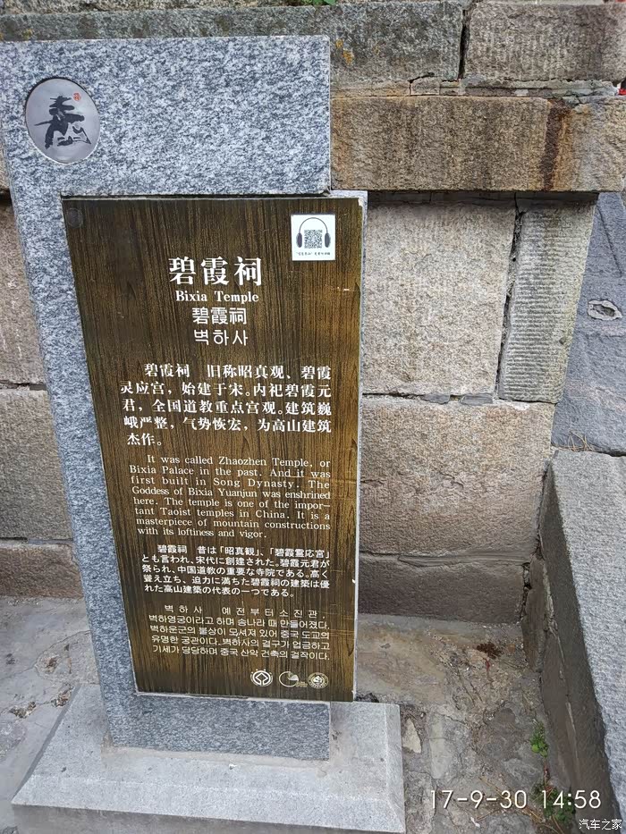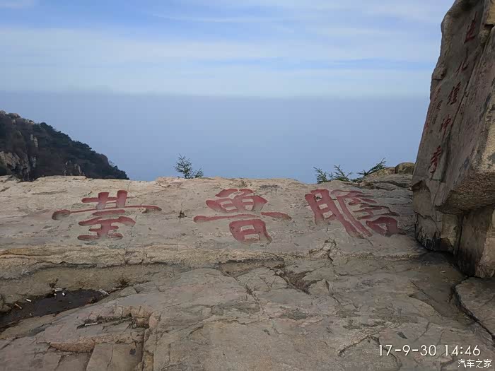 没来泰山前在人民币上也见过“五岳独尊”,在泰山火车站前就看到了这四个大字,不过那是复制品,如今用了七个小时爬到它的脚下一定要摸摸它,还好今天不是国庆长假期,否则人多的会让你靠不上前,选择提前来一天是多么重要啊!建议车友们出去旅游不要在长假里,否则去哪哪里都是人,就是排队了,没有时间干别的.在后面的行程中,我去趵突泉就在国庆长假了,人特别多,我前面的一个女游客拍泉眼时,被人把手机挤掉池了里了,保安帮着用杆子取,不够长,只能傻傻站那看,走又舍不得,不走也取不上来。