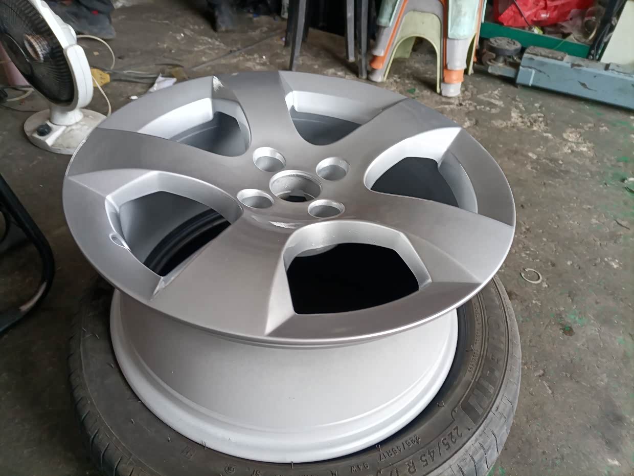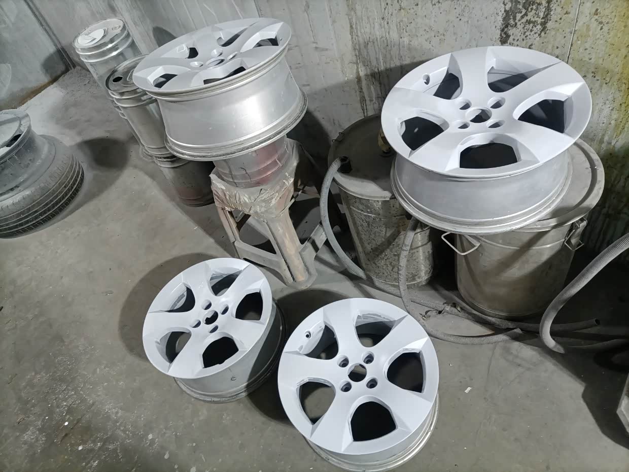 网购的四个原车轮毂打磨上底漆处理。