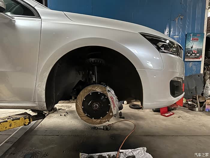 关于改装这个问题,是因人而异,我最早起念头的是刹车,因为工作原因,经常在高速或国道上赶路,本身我的车刹车耗材也到了要更换的时间,于是本着以改代修的原则,更换了某国产品牌的四活塞套装,目前使用良好,刹车线性,制动力提高了不少;配原厂轮毂避开这个卡钳需要加大于5mm的垫片;加垫片后还需要更换加长轮毂螺丝,保证安全性;