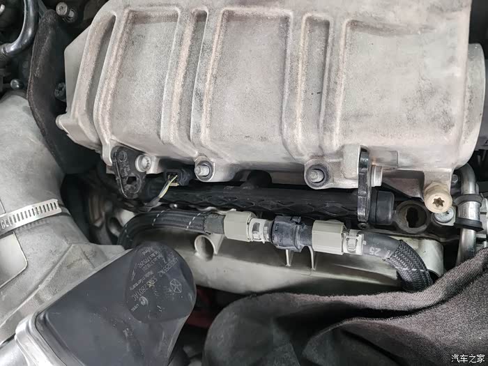 吃完早餐,去修理厂,一路给油提不起速度,拿来故障仪扫出来机增2缸温度257°(左侧),1缸46°,且故障码消不掉,把机增左边温度转感器按压住,有显示47°,检查插头线束没有问题,怀疑探头内部接触不良。