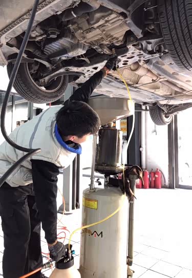 使用变速箱油加注器将新变速箱油加入变速箱,在放油口直接加入就可以。