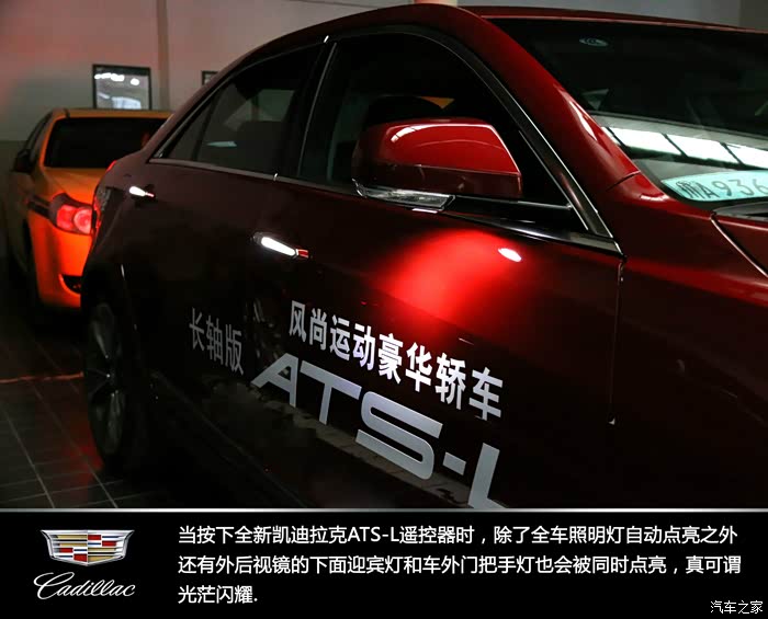 第二天一早来到提车的凯迪拉克4S店,接过钥匙在黑暗的车间内光茫闪耀的车灯让我第一眼就见到我今天要试驾的主角---凯迪拉克ATS-L 28T顶配版