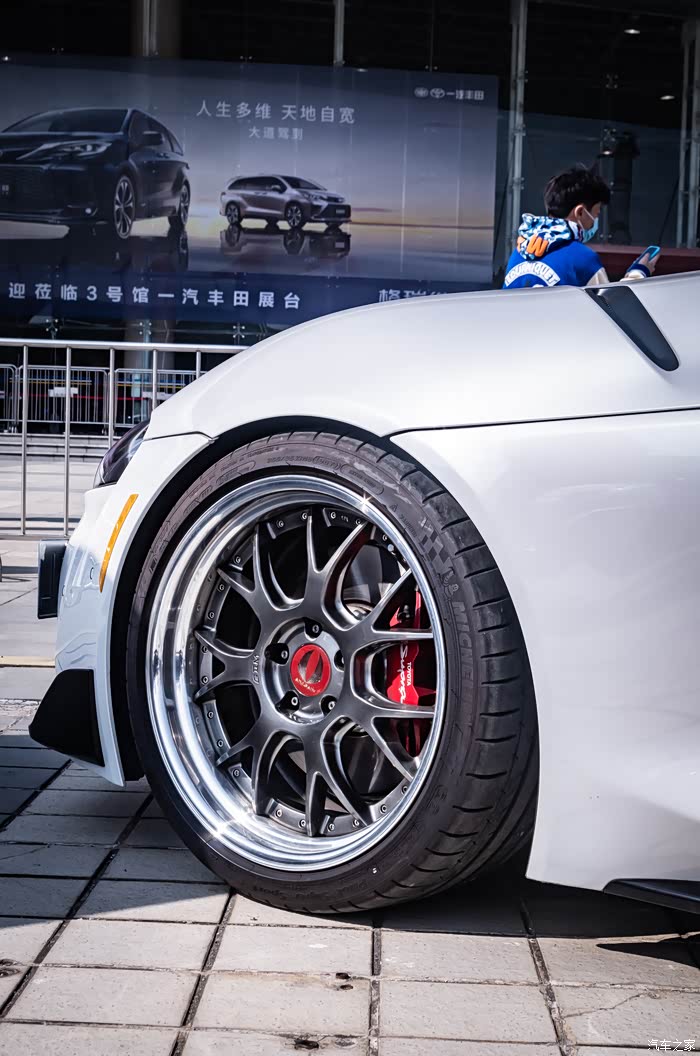 现场的露天场地还有一台银灰色的A90同样只是对轮毂进行了改装,改了一套亮银色的轮毂,由于没有轮毂标无法得知是哪个品牌的轮毂。不得不说的是,这台银灰色的Supra没有和上面的这两台摆在一起,再加上低调的颜色让它并不那么显眼,我还是逛了几圈之后才得以注意到它的存在。