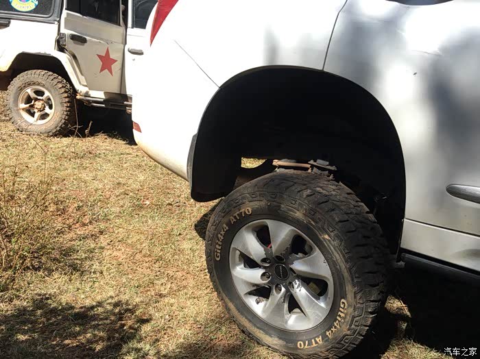 悬挂行程的概念很简单,把汽车举升到汽车悬空,通过观察轮胎和轮眉之间的距离的变化,悬空之后的距离减去静止在路面上的距离,就可以知道悬架的行程了。悬架的行程深受越野玩家的重视。行程越大,轮胎越不容易悬空,这是显而易见的道理。只要轮胎不悬空,就不容易出现单边空转的情况,什么差速锁啊就不需要用到,车辆的传动就越简单,性能越可靠。如果行程不够,则需要加装差速锁等一系列的装备去改善。