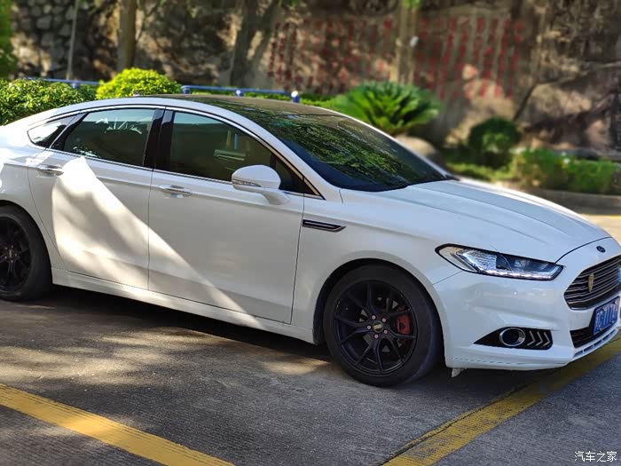 首先,说为什么选这车,车子是13年8月份左右上市的吧,我们这边三四线城市,根本看不到车。第一次,看到车应该是13年12月或14年1月份,当时刚好有换车打算,第一眼看到真的是超级喜欢。但是毕竟是第二部车,没那么冲动,还是现在这个论坛里潜水了半个月后,最后还是决定买致胜(因为资金不足)。后来,去4S店看车,试驾致胜感觉还可以,因为喜欢也顺便要求试驾一下新蒙,但是试驾车只有1.5T让我很失望,后来就定了致胜了。因为小城市没现车,要等一个月,当时就交了1000元定金,交完后没事就去4S点催提车。也是在这认识了里面的一个经理,后来被说服了,当场改蒙迪欧,但因资金不足只能打肿脸上2.0时尚(1.5的动力让我很失望,不可能考虑)。那会没优惠不说,还***加价,一辆我记得当时车子全部弄下来要了我24.5万(要放现在估计都可以豪运了吧,因为我徒弟前两年也买了17款豪运好像也差不多这价,真是鄙视福特)。车子等了两个多月终于拿到了,手里也有点闲钱就开始折腾改装。虽说是***丝,但是气势不能落下。后面改的我就不说直接上图。