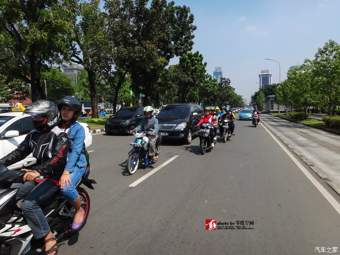 出了机场,一股热浪迎面扑来,让我们吃惊的是在四十度的高温地区那里的人们竟然还穿着皮衣。在后来雅加达的日子里我们明白了,这边虽然温度高,但很通风透气,特别早晚的风力很大,所以这边开摩托车的人们基本上都是穿皮衣挡风。