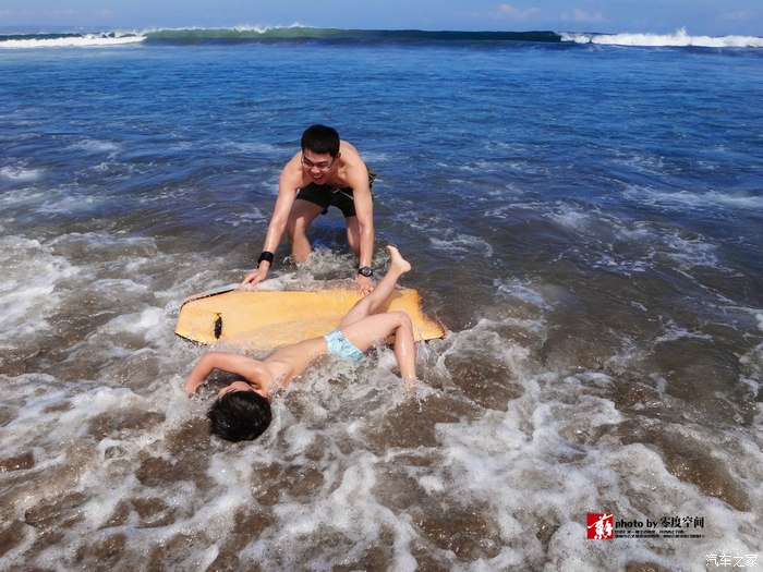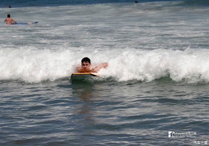 水明漾海滩是冲浪者的天堂,海浪汹涌澎湃,很有气势。我独自一人拿着冲浪板游向大海,虽然是第一次玩冲浪,不能站立在冲浪板上,但借着海浪的冲力将我一次又一次推向岸边,体验那一次次与海浪搏击、驰骋在浪尖上的感觉真让人难以忘怀。