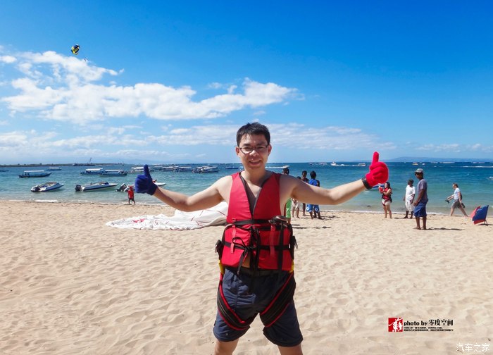 Nusa Dua区一角的南湾海滩是水上活动的乐园,水上摩托车、香蕉船、降落伞等等,可谓一应俱全,还可以砍价,巴厘岛人很友善,也很温和,这点比国内的旅游景点强太多了。摩托艇开一大圈只要70元人民币,水上降落伞100元。这些项目在海南三亚没300块玩不了。