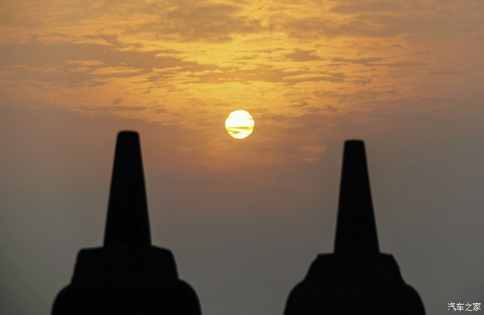 第二天凌晨4点多起床,由于酒店离婆罗浮屠很近,坐摩的5分钟就到了,买了日出票,天色刚蒙蒙亮,到达佛塔顶端静候绝美日出的刹那。