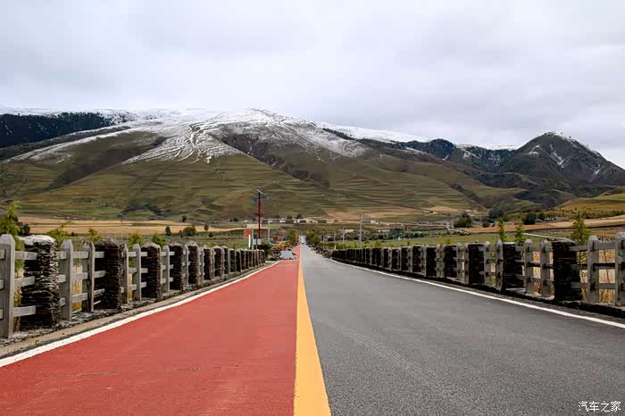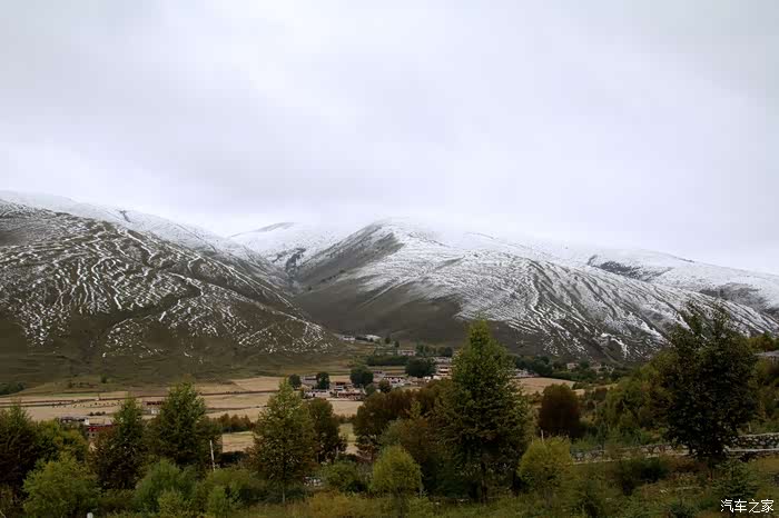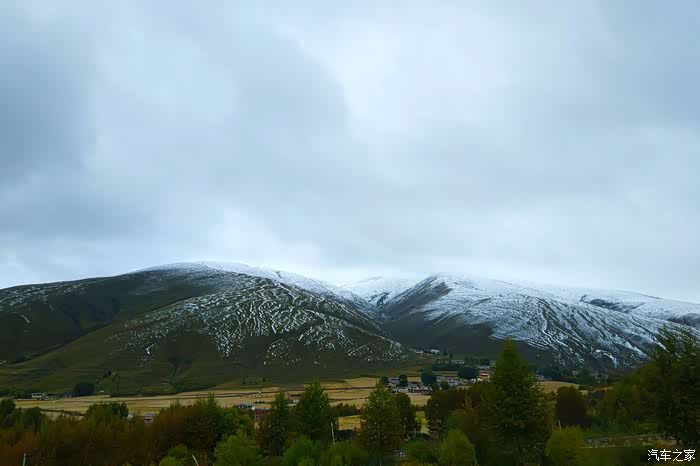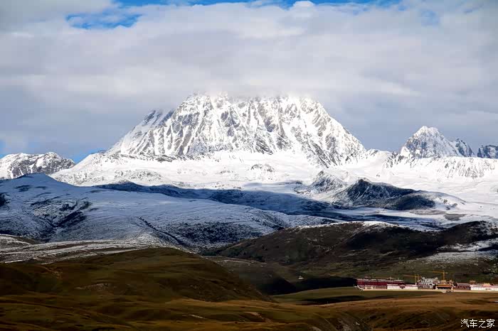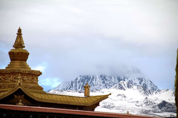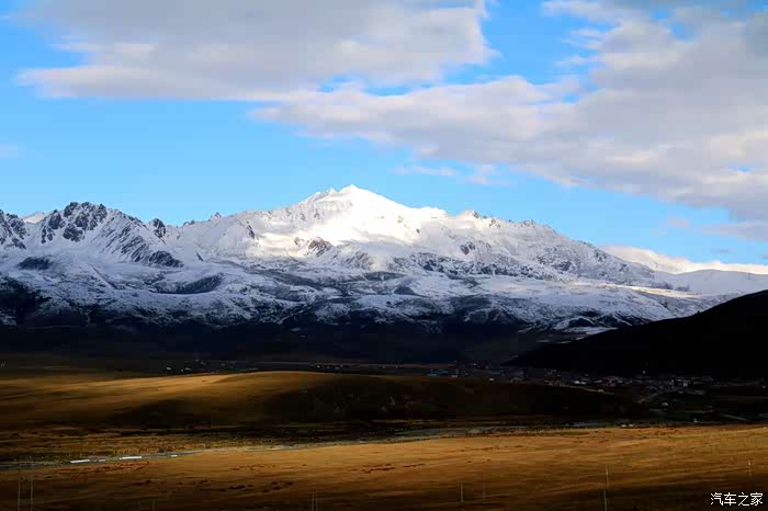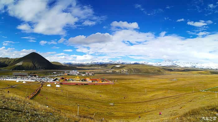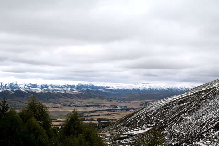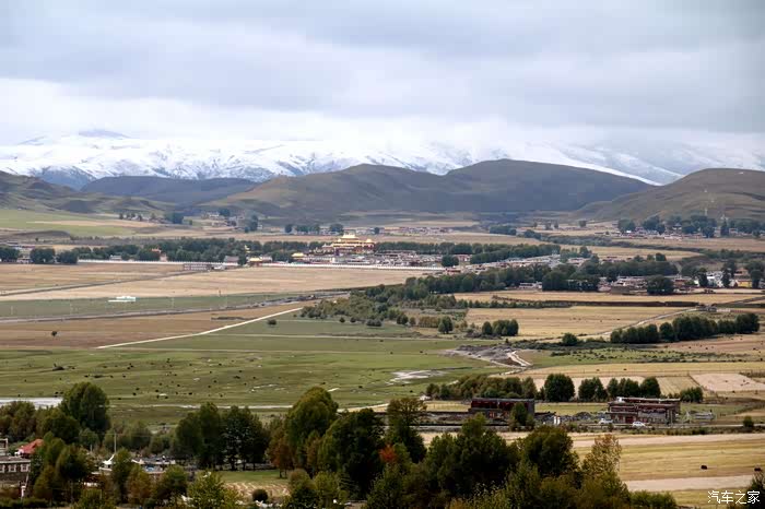 下面一片辽阔便是协德乡,远处连绵山体像一道天然屏障,横亘在草原上,山顶覆盖昨夜认真的雪,金光熠熠的是正是惠远寺。上次路过没有留意,这次一定要去看看。