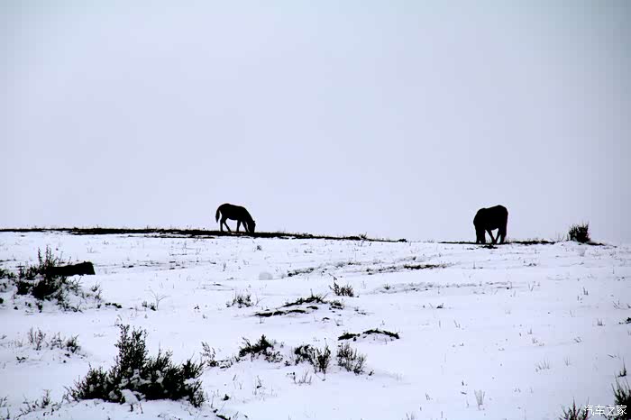 开始翻越疙瘩梁子,天地一片苍茫,马儿在山坡上啃草,仿若一幅黑白画。四处打望找寻,忘不了三年前在垭口的那个烤肉摊,现杀的牦牛架在旁边,现割现烤,肥瘦相间,滋滋冒油,一口下去那个新鲜香嫩,着实令人回味。真可惜,现在没有了。同样的还有在红原机场三岔路口吃到的手抓牛肉,第二次去也没有了。往往就是这样,偶遇的偏偏最好,再找寻却已无影。