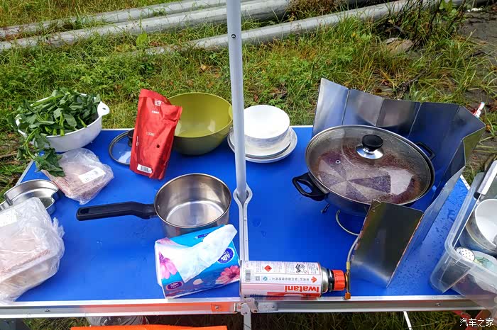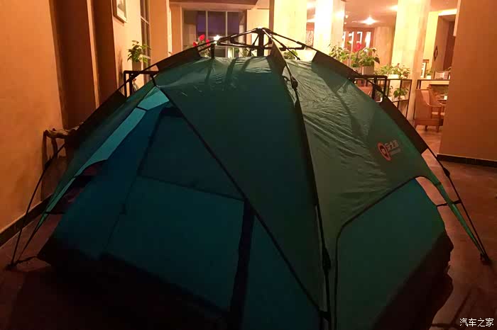 帐篷搭在酒店大堂茶座,安静也干净,旁边还有成都一家三口也是搭的帐篷。解决了住的问题,就该填饱肚皮了。带了卡炉和火锅底料还有食材,无奈开了一天车不太想动了,简单解决吧。米饭是用车载电饭锅路上就煮好的,用的是老丈人家特供的丝苗米,出门在外还能吃到家乡味,那必须是太幸福了。饭后再来一杯格鲁吉亚红酒,哇哈哈,泡面榨菜鸡爪配红酒,这品味也是没sei了