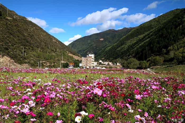 路过双桥沟后没多远,公路左侧一大片格桑花,好多人驻足拍照。其实这几年花海看过不少,之前去俄木塘时还不是景区,这仅仅是一片人工种植的花田,停车拍照五元,但人就是从众心理,看到别人停车也就拐进去了。几个小朋友在门口收费,里面几个小伙子维持秩序,不时提醒游人不要踏坏了花,毕竟这才是大假第一天,还要可持续发展呢。这的确是一个好点子,利用家门口的一片野地,趁着国庆期间车流大创收。