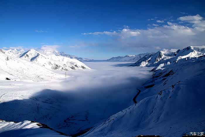 重新驶回G318,准备翻折多山。前两天大雪,好多车滞留山上。现在雪后天晴,蓝天白云,一路歌声。