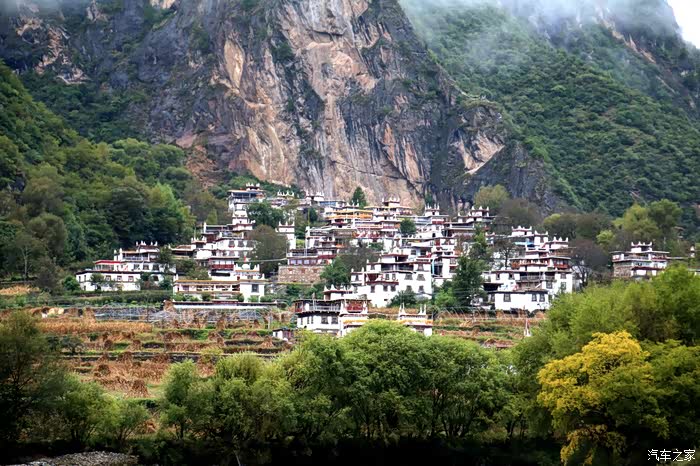早上七点多起床,吃完早餐收拾帐篷出发,天空淅淅沥沥下着小雨,不免隐忧这个天气。。。出门右转就是莫斯卡党岭方向,路况良好。百度地图路况没有更新,还是让从金川县绕行一大圈,用高德就是正常的。半小时后路过大桑藏寨,凡是有石头刻字的地方必然有人拍照。寨子坐落在河谷旁,依山傍水,云雾缭绕间白色的藏式民居错落分布。