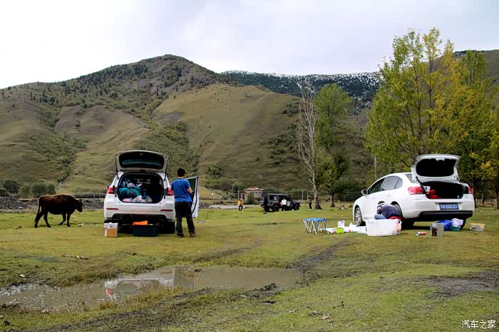 路边河谷旁有几辆在这里午饭,我们也下道。午餐供应:煮面条、拍黄瓜。到了甲根坝乡左转是去雅哈垭口,路边问路时一个大姐说里面封路进不去了,还是尝试往里面走,一直是水泥路,过了几个村子,大概七八公里后对向一个SUV停车说上山修路,车进不去了。无奈调头,估计离收费也不远了。