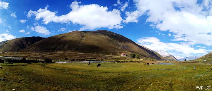 快到塔公草原了,天气也越来越好了,下主道找了家藏家乐,要了一大壶酥油茶,支锅造饭。