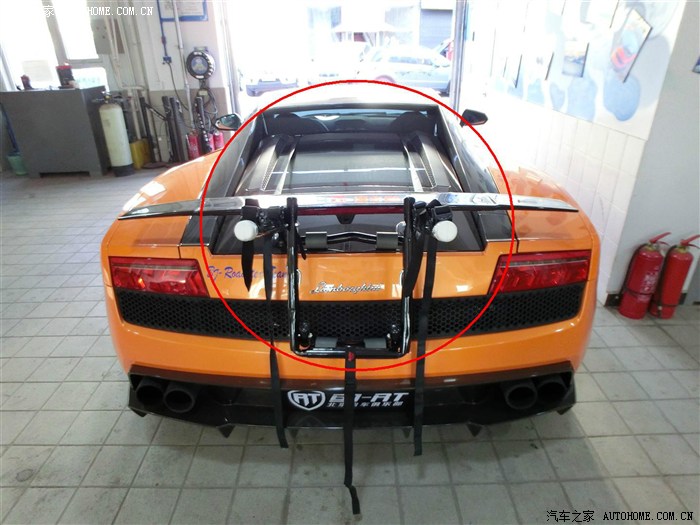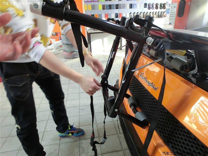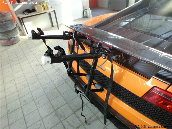 在淘宝上看到的 上面没有说适用于跑车 但是写着通过 拿到货发现果然兰博在超跑里面算是很实用的 如图 架子是卡在尾部 且有两个钩子勾住后备箱才可以 法拉利和R8由于尾部是下滑型 没有卡的缝隙没法安装 也就是说 兰博相对其他超跑来说真的是非常实用 但是大牛就不行了 卡在玻璃上容易出问题 除非车主不怕无所谓
