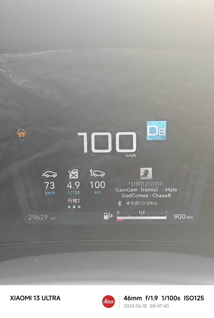 这是定速巡航100的情况下,跑了整整100公里的一个油耗,总汇油耗是4.9,我相信这个数据还是挺满意的