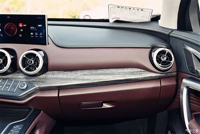 不得不说WEY营造豪华的手法还是很高级的VV7PHEV车型内饰和VV7燃油版基本一致,大面积的采用皮质包裹以及软材料覆盖,不论看起来还是摸上去都很有质感。