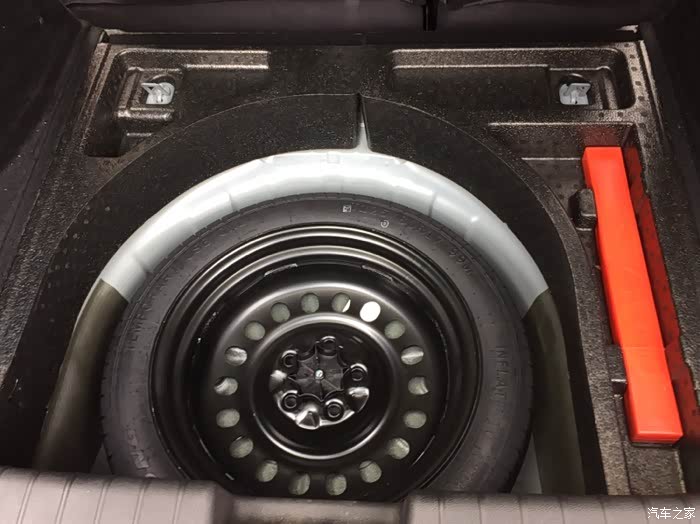 这就是备胎了,至今没用上一次,最好永远用不上,后备箱放满物品的情况下,想拿出三角架是一件非常困难的事情,准备想个办法放在上面