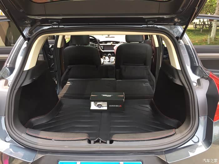帝豪Gs后排座椅可以放倒,而且几乎为平地一般,所以试一下小灰灰如何率为平地