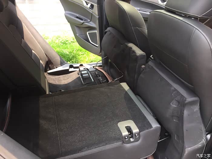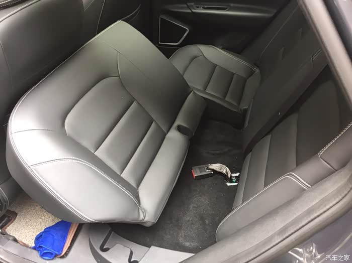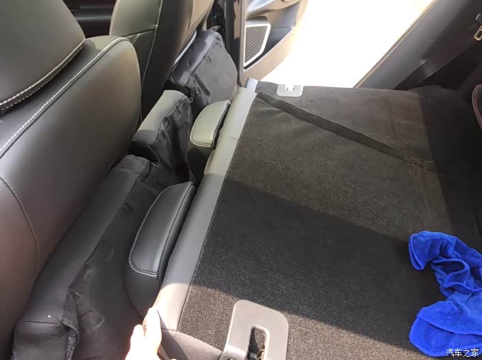 后排座椅图,偶尔在后排横着睡觉,座椅是不平的,睡起觉来腰部位置率高,不易睡觉