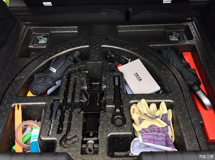 还有个泡沫备胎盖板,泡沫有许多槽,可以放一些小工具