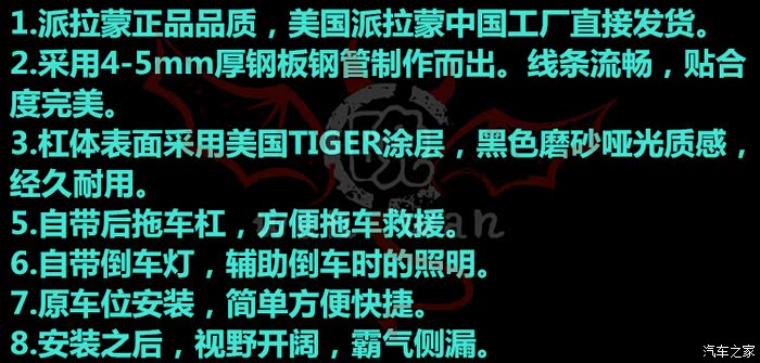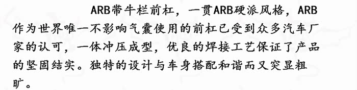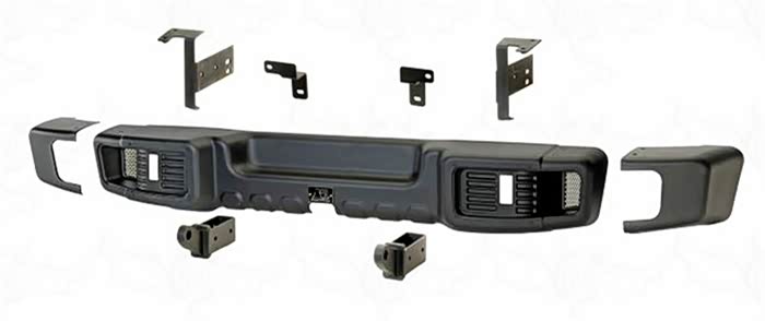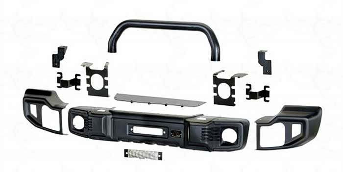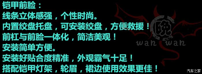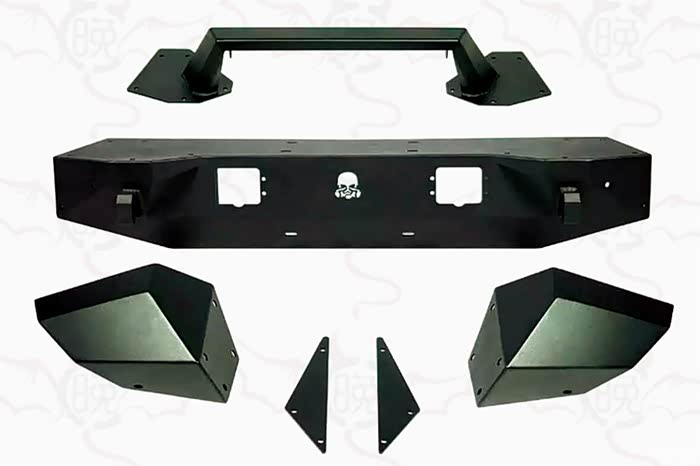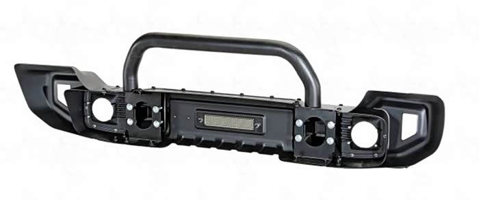 在目前众多的改装前杠大致可以分为三种:长款前杠,中短款前杠,短款前杠(长款后杠在野外郊游场地和倒车时可以清除石头、泥土、杂草等等这类障碍物,和原车轮眉搭配最协调兼备装饰件与实用性,比如aev这种前杠就是长款的前杠。