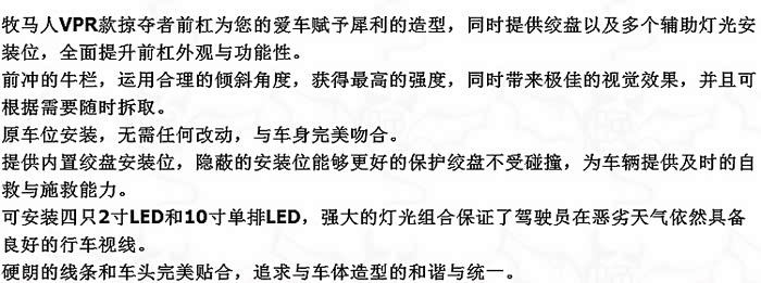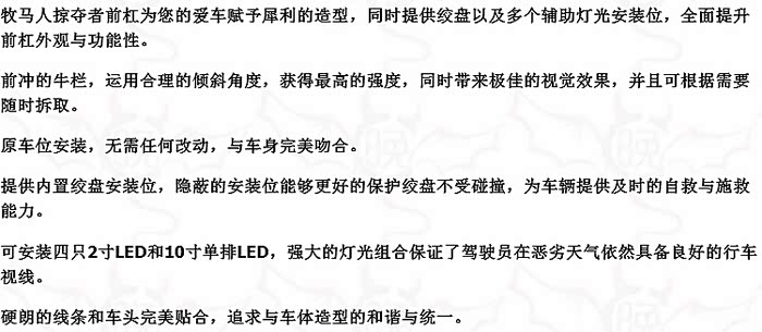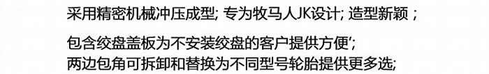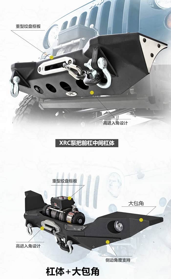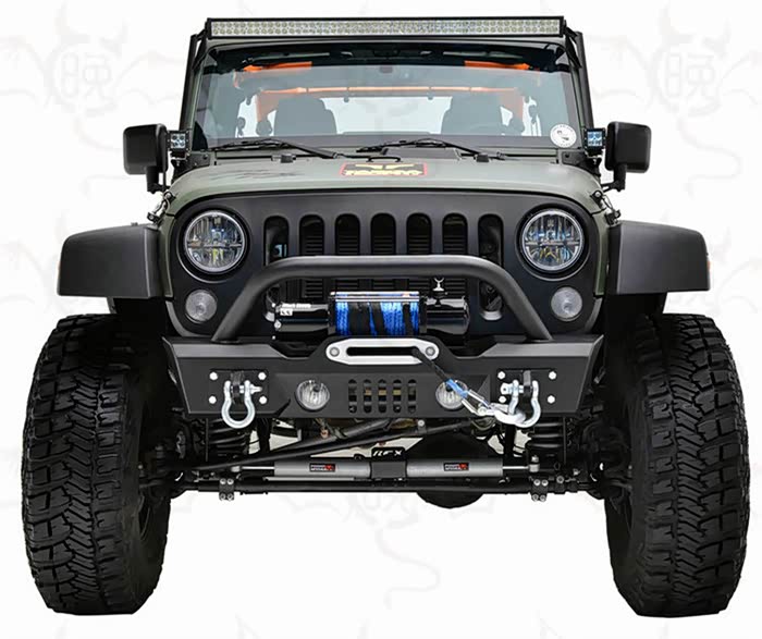 中短款和短款前杠设计的目地是避免马儿升高后换大轮胎去越野穿越发生刮蹭和摩擦这些问题,中短款前杠和短款前杠搭配飞机轮眉更加协调,比如毒蜘蛛这种前杠就是短款前杠;比如teraflex前杠就是中短款前杠)。