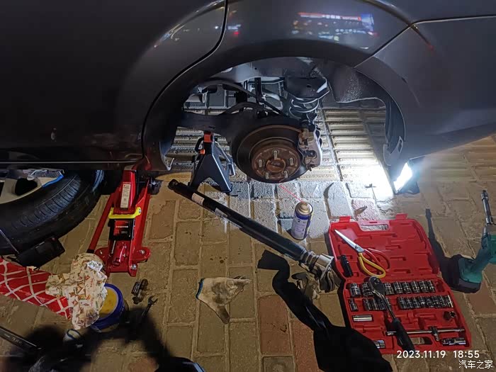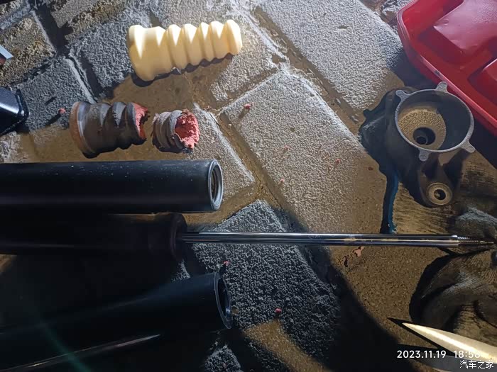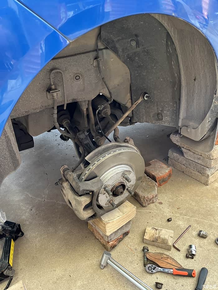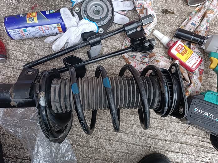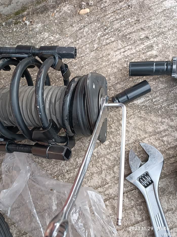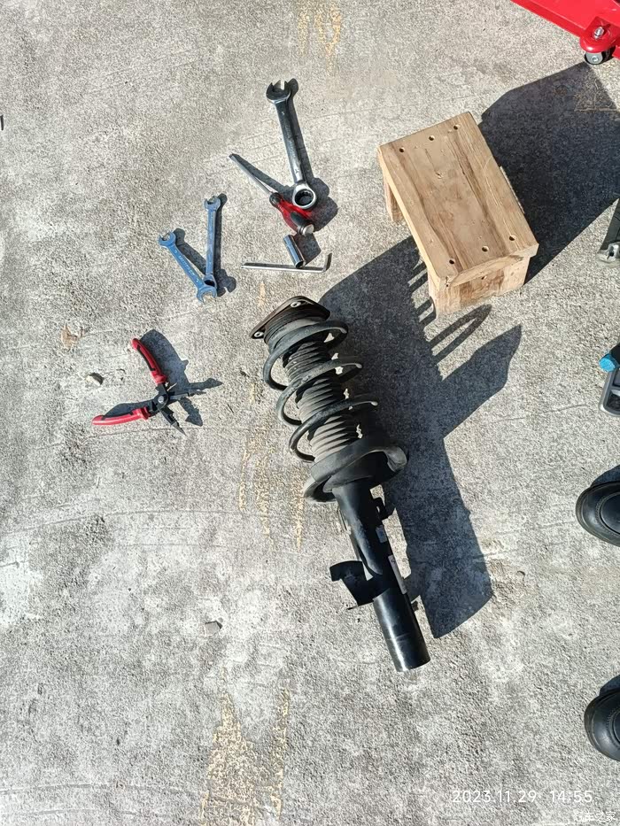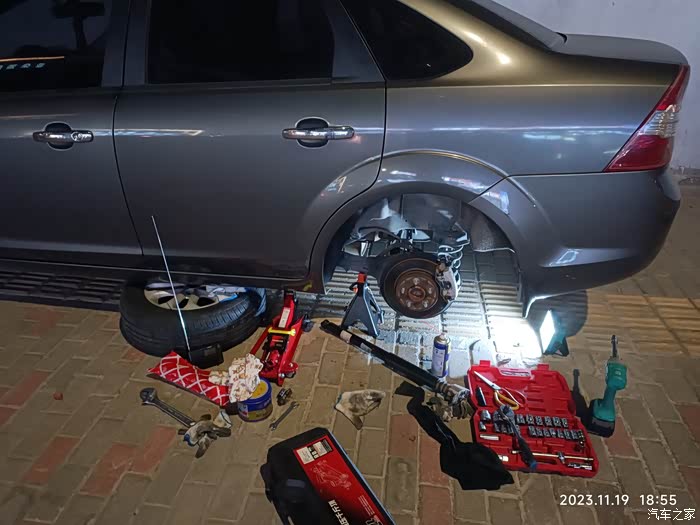 福克斯目前21万公里(2014年购买),最近出现原地调头方向打死起步时会“叭叭叭”的响,并且低速直行也还会轻度异响,一直以为是左侧半轴外球笼磨损的原因(因为不久前刚更换过半轴防尘套和清洗与加球笼专油脂),福克斯原装的半轴总成是外资品牌SDS(纳铁福)配套的,就淘宝上卖的半轴总成单根都要近800,国产上市公司的GSP(冠盛)的价格只要SDS的一半,但总是不放心的感觉,因为这个异响困扰了有一些时间,把车开到老乡修理厂经验丰富的机修师傅将车上架左右打死方向低快加速都无异响,在路试后就肯定的说不是半轴球笼问题是前减震器、平面轴承、机顶胶问题,我平时都是自带配件给工时的老乡愿意自带配件付工时(左右减震拆装收300-400块),配件到以后修理厂实在忙刚好配件都放车上又回了老家参加舅哥新房乔迁宴席,散席后很多亲戚还在喝酒我又不好酒,所以穷屌丝的我又闲不住自己捣鼓起来把福克斯又拆散了,各位车友不嫌烦的继续看下面的实操吧。口号喊起来!什么都能搞定就是“穷”字搞不定,哈哈!