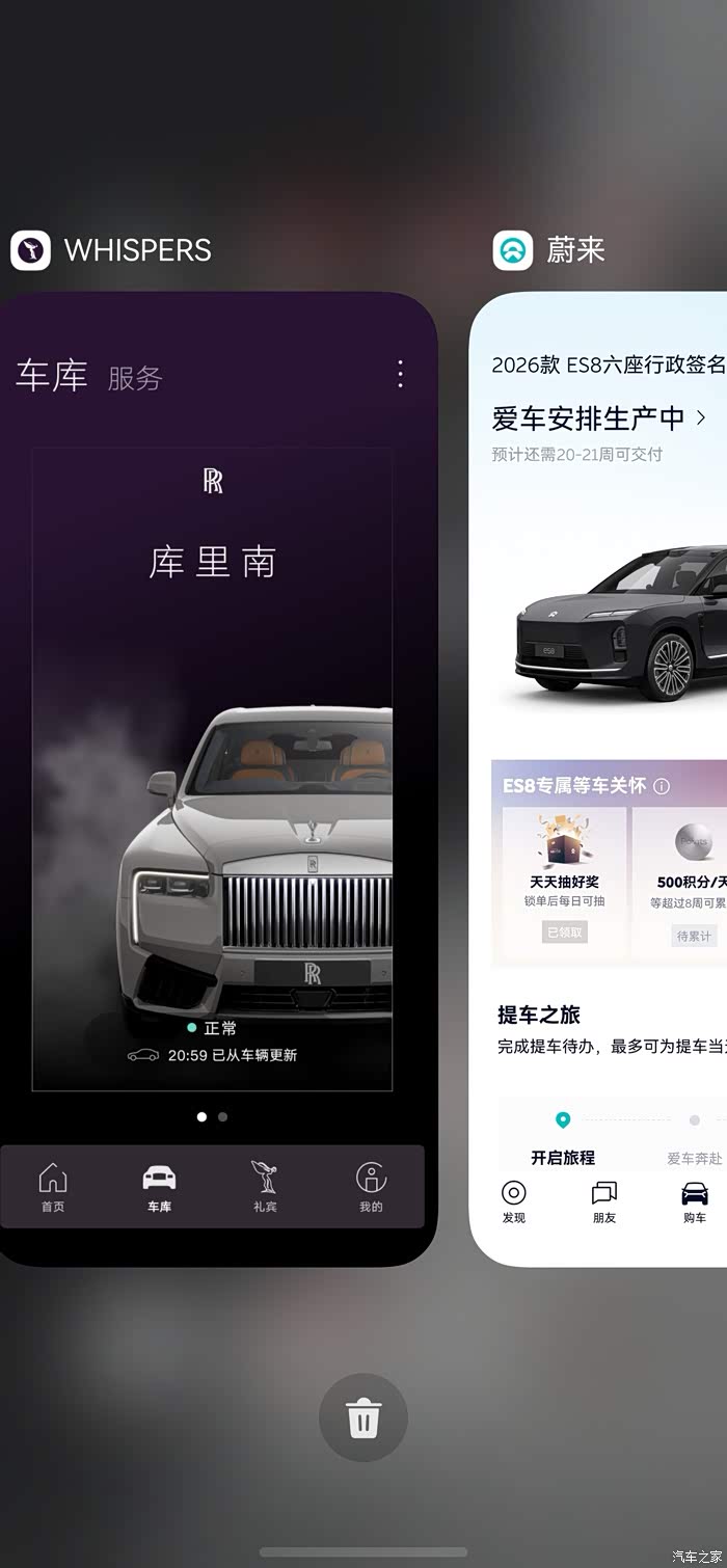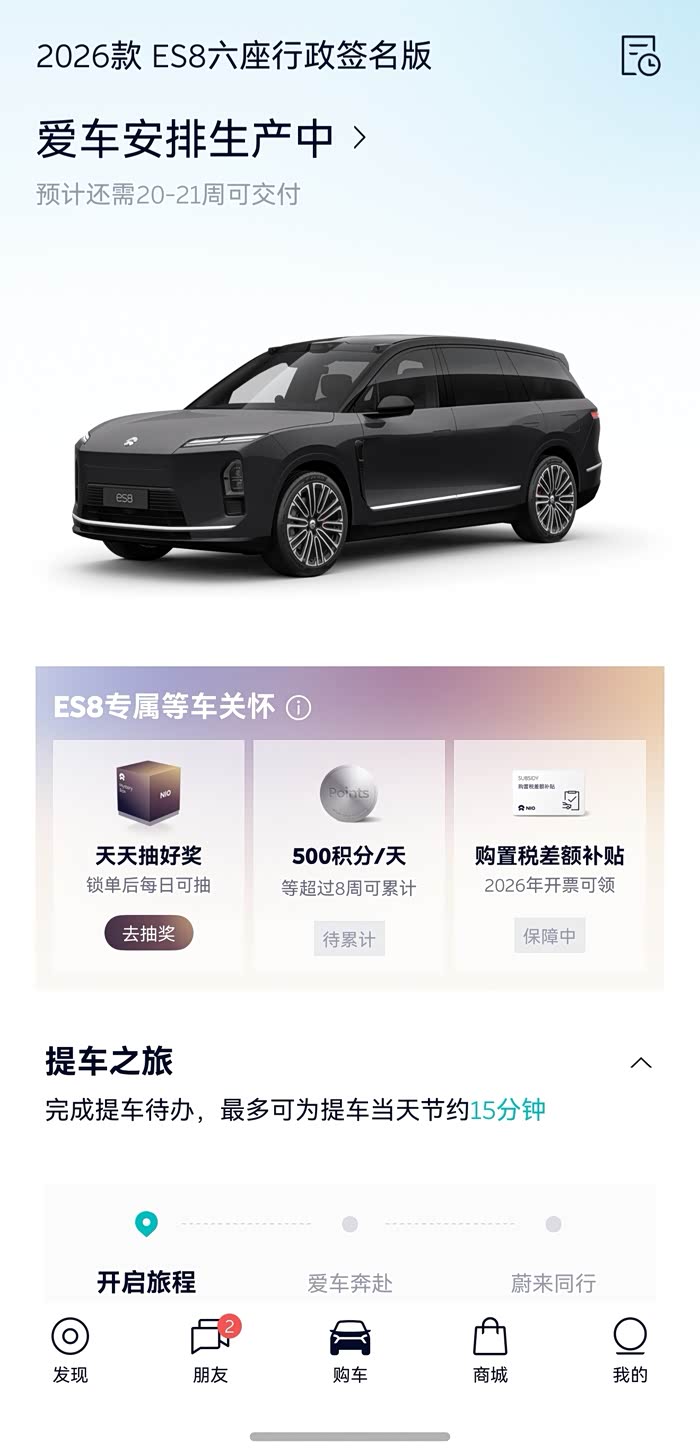 说回蔚来。本来看到ES9碟装,不过可能也要挺久,而且本身8空间够用,所以最终先下订了一个签名版。灰外红内,感觉应该还不错。顺便可以等等9,万一遇不到就提了,遇到了就转个单。不过吐槽一下,蔚来这个等待周期都快赶上我库里南了。库里南也不过是二月订车九月提车了。