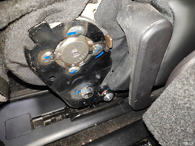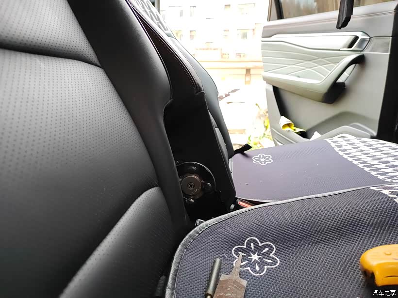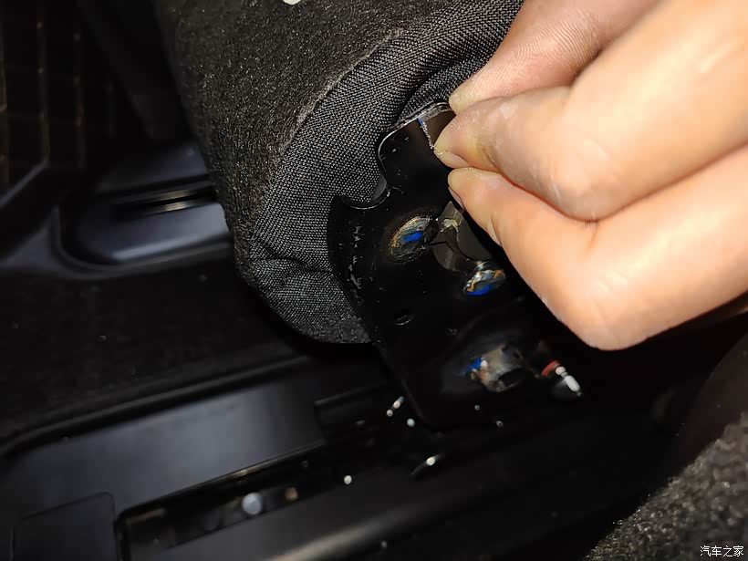 接下来就是拆卸座椅另一侧的这个装饰盖,都是同样的道理,拆掉螺丝之后再把这个装饰盖晃动着给弄下来就行了。