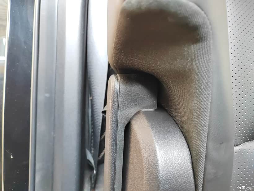 第1步,拆卸座椅两侧转轴位置的保护盖。因为这款车的第2排座椅都是独立座椅,所以在每个座椅的两侧转轴的位置都会有一个塑料的保护盖,这个里面就是座椅靠背的转轴机构和限位装置。这个盖子只是有一个螺丝进行固定,其他的都是卡扣。螺丝就是在这个装饰盖正后方的这个位置,是t20的螺丝直接拧开就行。